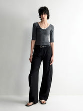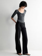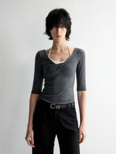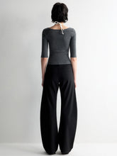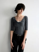 A stylish T-shirt with a twist neck and waist-tying design that accentuates your figure for a fashionable look.