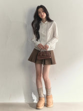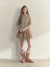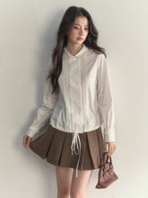 This retro-inspired shirt combines a soft doll collar with a relaxed cropped silhouette, striking the perfect balance between vintage charm and modern wearability. The double-breasted front and puffed shoulders lend a refined structure, while the cotton fabric adds comfort and breathability. Featuring delicate stitching and gentle texture, it pairs beautifully with pleated skirts, trousers, or layered knits. Whether in creamy ivory or heritage plaid, the design radiates a timeless academic aesthetic — versatile enough for everyday styling yet full of elegant detail.