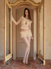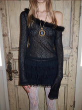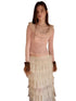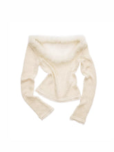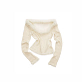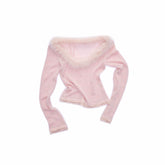 This lightweight knit top is crafted with a pearl-blended yarn and finished with subtle sequin detailing for a soft shimmer effect. The wide round neckline is designed to pair with a detachable faux-fur collar, adding a romantic accent to a classic base silhouette. Delicate lace-style trim along the cuffs and hem enhances movement and visual layering while keeping the look refined. Semi-sheer yet breathable, it works effortlessly as an inner layer for everyday styling with a balance of comfort and elegance.