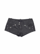 Crafted from premium washed cotton denim, these ultra-shorts feature a sand-washed finish that highlights natural texture and a vintage tone. The low-rise, straight-cut silhouette is designed to contour the waist and hips while visually elongating the legs for a sharp, slimming effect. Functional cargo pocket detailing is paired with a custom antique-finish metal buckle, blending utilitarian structure with retro riding-inspired elements. Designed for statement styling, they work effortlessly with fitted tops or layered looks for a bold everyday outfit.