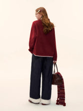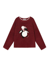This sweater features a playful penguin jacquard and embroidered detailing finished with dimensional pom-pom accents for added texture. Crafted from a soft wool-blend yarn, it offers gentle warmth with breathable comfort for everyday wear. The relaxed silhouette and classic crew neckline make it easy to style while maintaining a youthful, statement look. Ribbed cuffs and hem help retain warmth without restricting movement.