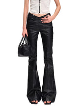 Crafted from high-stretch denim with a subtle wax-coated finish, this piece offers a smooth sheen while maintaining excellent flexibility and comfort. The structured V-shaped waistband enhances the waistline and elongates the leg proportions for a sleek silhouette. A refined micro-flare cut balances fitted hips with a fluid leg opening, creating a confident, model-like profile. Designed for everyday wear with elevated style, it delivers both visual impact and all-day ease.