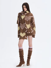 Crafted from a soft wool-blend knit, this set features a cozy hand feel with balanced warmth for seasonal wear. The sweater showcases an original pixel-style jacquard pattern, creating a layered visual rhythm with a vintage-inspired tone. Designed in a relaxed silhouette, it offers an easy, unrestrictive fit that works well for everyday styling. Paired with a matching knit scarf, the set delivers both functional warmth and coordinated aesthetic appeal.