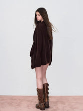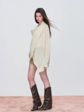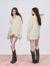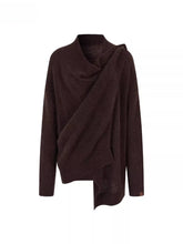 Crafted from a soft wool-blend knit, this sweater offers a lightweight yet cozy feel for seasonal wear. The draped shawl neckline creates natural folds, adding relaxed dimension and visual flow. Designed in a loose silhouette with subtle asymmetry and extended length, it delivers effortless movement and comfort. Easy to style over slim bottoms or skirts for an easy spring look.
