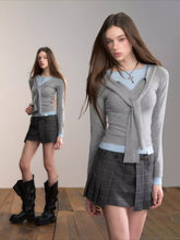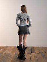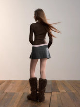 This vintage-inspired mini skirt is crafted from a textured plaid fabric with a wool blend, offering a structured yet refined feel. The irregular button detailing and double-waistband design add depth and a deconstructed edge to the classic pleated silhouette. Soft pleats enhance movement and create a flattering, dimensional shape. Finished with a built-in inner short for added comfort and confidence, it’s an easy statement piece for spring styling.
