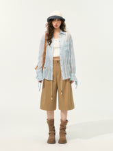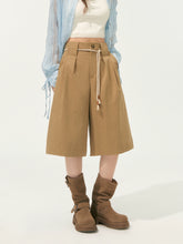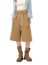 This is a khaki simple 3D pleated shorts. It features a simple design with 3D pleats, offering a comfortable and stylish fit, perfect for adding a touch of fashion to your summer wardrobe.