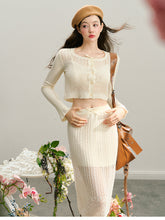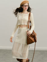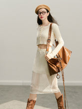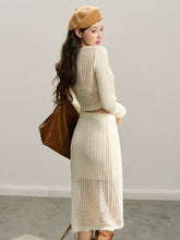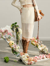 GROUP OF UNIVERSE,Beige Knitted Lightweight Midi Skirt