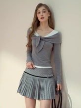 Premium soft-touch fabric pairs with a structured wide waistband for a clean, refined look. Pressed box pleats create a crisp A-line silhouette with light movement, while contrast black satin tape adds a retro accent. A handmade self-fabric bow at the side waist finishes the preppy styling for campus, daily wear, and gatherings. Practical touches include an anti-see-through lining, smooth side zip, and a custom logo badge.