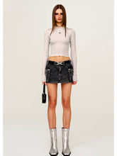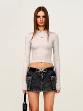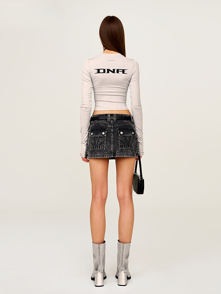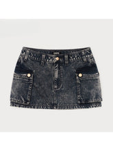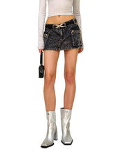 SMFK's utility mini skirt designed in 2025 with a mid - to high - rise fit. It features extra - large three - dimensional utility pockets on both sides of the thighs. Cross - flower metal I - shaped buttons & rivets.