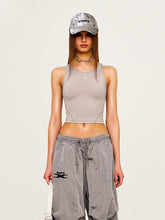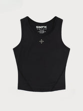 Designed by SMFK in 2024, this extreme sports vest features V - shaped side - abdomen splicing for waist - cinching. There is an embroidered bordered cross - flower emblem on the chest.
