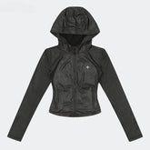 The SMFK Wave Motion Fitness Series from 2024 is designed for simplicity and comfort throughout the day. It features a long-fit fitness zippered hoodie with ultra-thin hidden zipper pockets. A 3M reflective silver cross emblem is printed on the left chest for visibility.Professional care and cleaning needed.