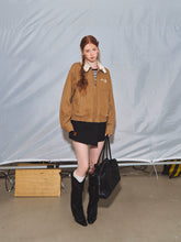 Barn-style vintage jacket with structured tailoring, relaxed shoulders and retro design elements, blending casual outdoor aesthetic with timeless charm.