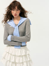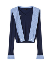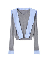 Fake Two-Piece Twist-Knot Spliced V-Neck Knit Top