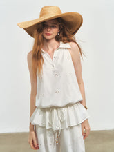 French-Style Printed Sleeveless Halter Tie-Up Top