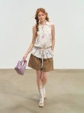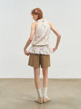 Product Name: French-Style Printed Sleeveless Halter Tie-Up Top