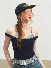 Plaid Halter Fake Two-Piece Inner Vest