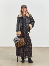 Crafted with a plush shearling lining and structured PU leather exterior, this moto jacket balances toughness with warmth. Featuring a classic lapel collar and oversized silhouette, it delivers a statement look that is both edgy and functional. Perfect for layering through autumn and winter.