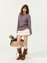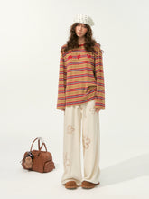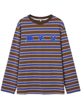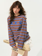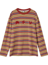 Color-Block Applique Embroidered Striped Long-Sleeve T-Shirt