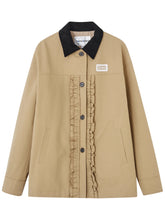 This stylish puffer coat features bold colorblock panels and a sharp lapel collar accented with soft ruffle edging.It’s insulated with 100% polyester fill for lightweight warmth.The water‑resistant shell and matching hood offer protection against the elements while ribbed cuffs seal in heat.Perfect for chilly days when you want a versatile, eye‑catching outer layer.