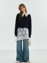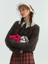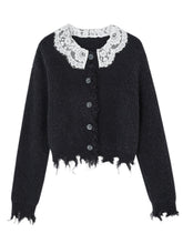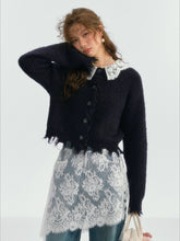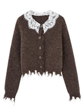 A romantic open‑front cardigan featuring a delicate lace doll collar and softly ruffled hem. Crafted from a plush knit blend for warmth and gentle stretch, this piece combines feminine detailing with effortless layering. Ribbed cuffs and hem ensure a snug fit, making it perfect for cool days and stylish evenings.