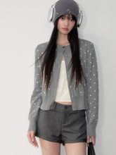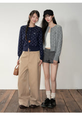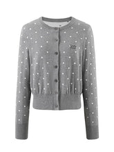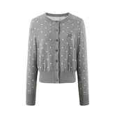 Crafted from soft knit jacquard with subtle polka dot accents, this Korean-inspired cardigan balances casual elegance with everyday comfort. Featuring a short length to highlight body proportions, ribbed hem and cuffs for a cinched fit, and a simple round neckline with delicate stitching details. The fabric is lightweight yet resilient, offering softness with resistance to pilling or deformation. Available in two tones — soft gray for a warm gentle vibe, and deep navy for a classic understated look.