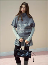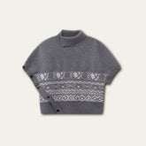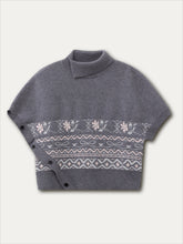 Winter-soft fair isle knit with a cute cape silhouette and peter-pan collar. Delicate seaming breaks the routine; airy puff sleeves look sweeter and fuller. Skin-friendly yarn feels warm and comfy—easy to wear solo or layered for depth. A gentle, romantic piece that stands out from ordinary knits.