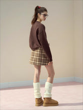 Product Name: Pink & Brown Plaid A-line Wool Skirt