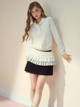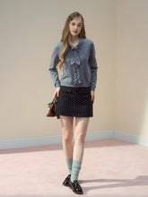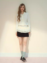 Creamy two-tone preppy knit with handcrafted crochet and lettuce ruffle edges for crisp dimension. Cute Peter-Pan collar trims the neckline—slimming yet sweet. Detachable bow-tie strap lets you switch styles freely. Made of soft, skin-friendly yarns; easy on/off; relaxed fit that flatters and doesn’t cling. 100% refined cotton feel on skin, comfy and resistant to pilling—effortlessly cozy for everyday wear.
