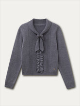 Ruffle-Tie Knit Peter-Pan Collar Sweater