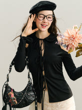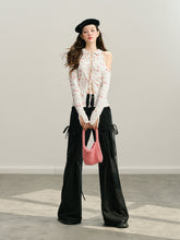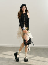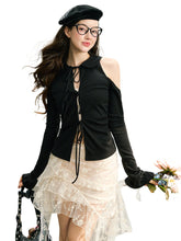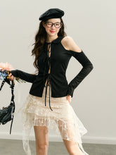 GROUP OF UNIVERSE,Black & White Off-Shoulder Tie-Back Knit Cardigan
