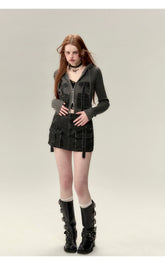 Model: 170cm/51kg, B/W/H:78/58/90, wearing size S.