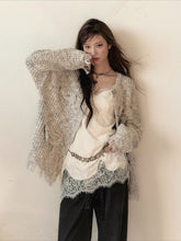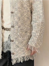 Frayed Edges Wool Mid-Length Knit Cardigan