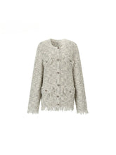 Name: Frayed Edges Wool Mid-Length Knit Cardigan This mid-length woolen coat combines creative knitting techniques with a playful fringe trim, bringing a touch of dynamic movement to the design. The rose buttons and flap pockets enhance the coat's detailed aesthetic, while the oversized fan-shaped silhouette ensures a comfortable and relaxed fit. This stylish outerwear is perfect for layering during cooler seasons, offering both warmth and visual appeal.