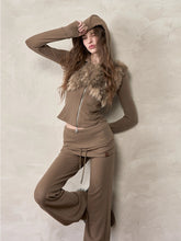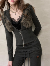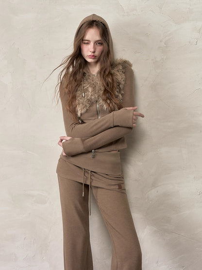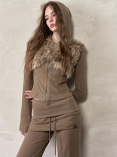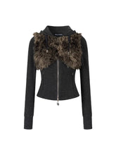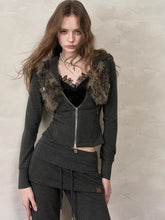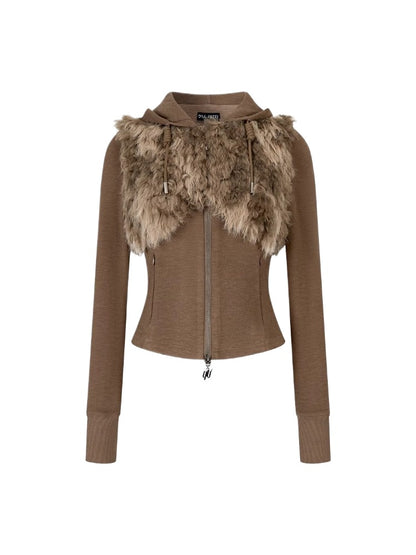 A short, fitted hoodie jacket that combines street style with retro details. The drawstring hood adds casual charm, while the plush faux fur panel elevates the autumn-winter vibe. Tailored to accentuate the waistline, this piece blends comfort with a chic, vintage-inspired look.