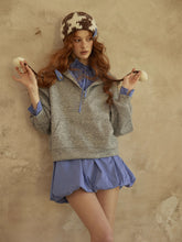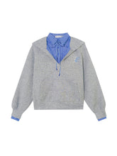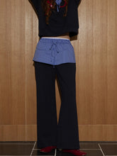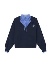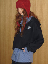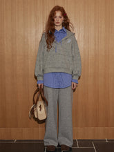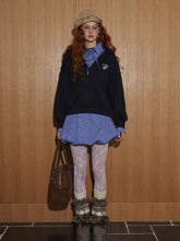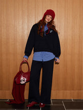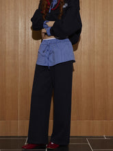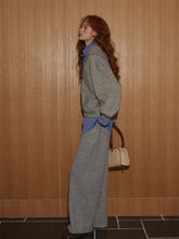 A relaxed and playful three-piece lounge set featuring a plaid patchwork faux two-piece sweatshirt, wide-leg drawstring pants, and a matching short skirt overlay. The mix of textures adds depth and versatility, while the apple embroidery and pearl-trimmed details bring a youthful charm. Designed in soft, breathable cotton-blend fabric with subtle stretch for ease of movement — perfect for casual street looks or cozy daily wear.