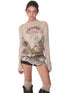 This cami top combines softness and edge through a V-neck silhouette trimmed with delicate lace and detailed with retro metallic studs. Crafted from brand-exclusive lyocell camouflage fabric, it delivers a subtle sheen and smooth hand feel while maintaining excellent breathability. The cropped loose fit and tonal layering create a relaxed yet refined visual balance. Intricate rhinestone embellishments add a touch of street glamour, making it an effortless piece for daily layering or statement styling.