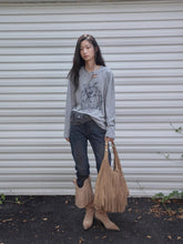 This relaxed-fit long sleeve tee features a washed, subtly distressed texture that enhances its laid-back silhouette. The front showcases a playful cat-and-dog themed print, exuding an effortlessly cool street vibe. Double-layered hems and cuffs add structural depth and visual contrast, while the 220g pre-washed Korean cotton fabric ensures a soft touch and excellent durability. Combining vintage charm with modern comfort, this piece transitions seamlessly between casual styling and daily wear.