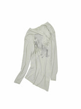 This signature piece from 1JINN STUDIO redefines the classic T-shirt silhouette with a sculptural, asymmetric drape inspired by equestrian elegance. Crafted with a tailored base and diagonal paneling, the design features organic folds that flow naturally with movement. The graphic motif is finished with vintage-effect printing and precision-set rhinestones, while double-layered rib trims enrich the neckline and cuffs. Made from a premium Lyocell–cotton–wool blend knit that combines breathability, stretch, and refined texture, this piece balances artistry and everyday comfort.