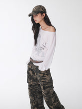 Rhinestone Embellished Asymmetric Drape T-shirt