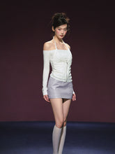 Two-Piece Off-Shoulder Halter Lace Blouse