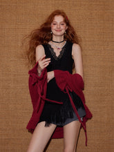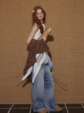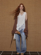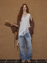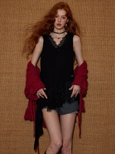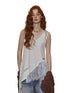 A delicate and refined sleeveless top featuring sheer lace patchwork with asymmetrical hem detailing for a touch of romantic edge. Crafted from a soft and breathable cotton-blend fabric that gently drapes against the skin without irritation. The deep V-neck enhances the neckline, while the irregular cut adds movement and visual interest. Ideal for layering under blazers or pairing with skirts for a chic, modern look.