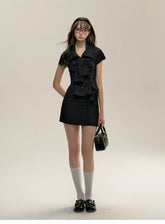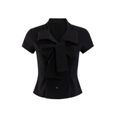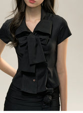 Black Striped Collegiate-style Butterfly Collar Shirt