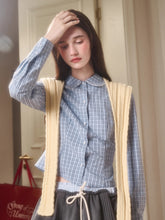 A lightweight check shirt made from 100% natural cotton, soft and breathable with a clean, delicate texture. The cropped silhouette pairs perfectly for layering or standalone wear, offering a fresh take on everyday classics. Available in creamy white and pastel blue, it captures a sense of ease and quiet refinement — ideal for spring outings or relaxed campus days.