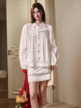 A delicate two-piece cotton ensemble that captures the elegance of simplicity. The crisp blouse features soft pleats and button accents, paired with a matching mini skirt adorned with lace trim for subtle charm. Crafted from 100% natural cotton, this set offers breathable comfort and effortless sophistication—perfect for both casual days and graceful outings.