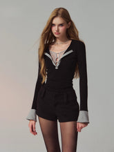 Designed with “Minimal Elegance, Multi-Wear Styling” at its core, this knit top blends fashion and practicality. The classic black-grey palette exudes understated sophistication, while delicate lace and pearl button details add femininity and refinement. Perfect for layering to create dimension or wearing alone for a premium, polished look.