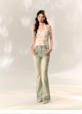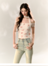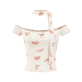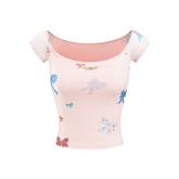 Red Polka Dot & Pink Butterfly Mesh One-shoulder T-shirt