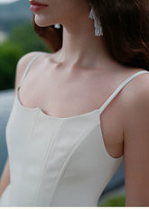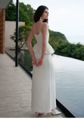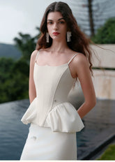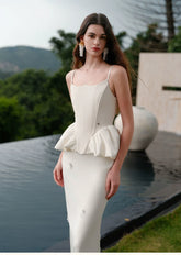 The dress features a sculpted fishbone chest design, highlighting the curves of the body. The fabric provides a three-dimensional texture, creating an artistic sculptural beauty. The mermaid-style fishtail design accentuates elegance and femininity, exuding a romantic charm. The handcrafted beaded floral detailing adds a unique sparkling touch, reminiscent of a starry sky.