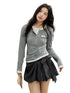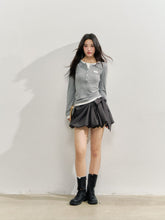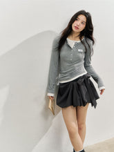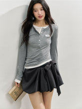 This base T-shirt uses Tencel material. The fake two-piece layering design has a sense of hierarchy. The inner collar adopts a 1-cm-wide dense embroidery process, full of details. The contrast-color edge treatment enhances the quality of the single product. The slim fit shows the figure better. The advanced and low-key tone creates a Miu-style college look.