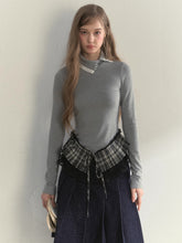 This slim-fit knit top blends softness and structure, designed for a refined yet effortless layered look. Crafted from a cotton-viscose blend fabric with gentle stretch, it delivers a delicate balance of breathability and warmth. The turtleneck and subtle pleated hem mimic a pre-layered silhouette, while the contrast panel adds depth and texture. Thoughtfully proportioned to flatter the neckline and shoulders, the design transitions seamlessly from casual layering to office or café styling. A versatile wardrobe piece that embodies the quiet elegance of the SunsetPark collection.