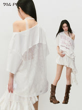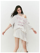 Off-shoulder Letter Hollow-out Spliced T-shirt